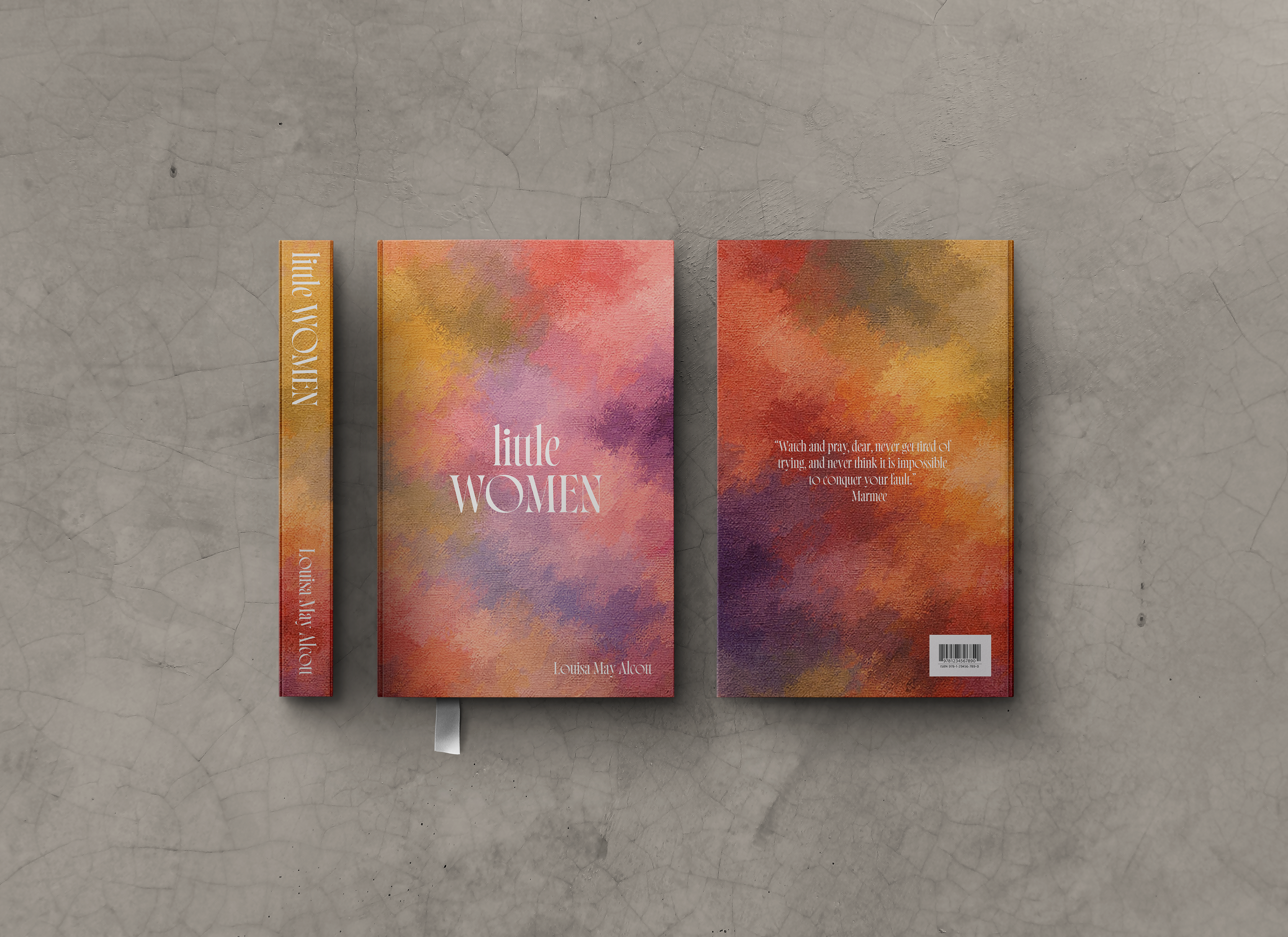 One of my favorite classic novels, Little Women by Louisa May Alcott, inspired this cover concept. I approached the design by representing each March sister through a distinct color palette, reflecting their individual personalities and journeys. Because their lives are deeply intertwined, these colors overlap and blend, symbolizing the unity and complexity of the March family as a whole. To bring this idea to life, I used a canvas and paint-inspired background, where the layered colors visually interact. The typography is intentionally minimal so the artwork can take center stage.